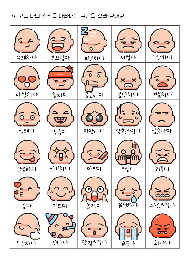 감정에 대해 아이들에게 다양한 예시와 단어들을 소개 한 뒤에