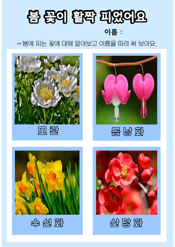 봄과 관련된 수업 하실 때 도움이 되었으면 좋겠어요.